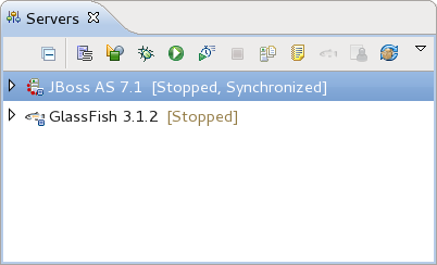下面在 GlassFish 3.1 上进行同样的测试。因为我们刚刚完成了 JBoss AS 上的测试,请在 Servers 视图停止服务器。